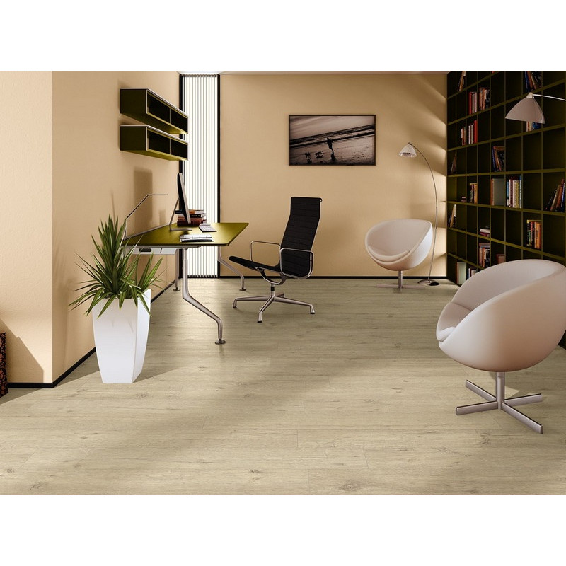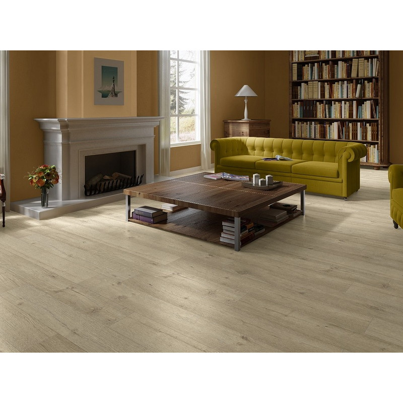 Ламинат Quick-Step Impressive IM 1853 Дуб песочный — влагостойкий ламинат 32 класса с реалистичной текстурой светлого дуба и лёгким песочным оттенком. Специальное покрытие фаски предотвращает проникновение влаги в стыки на срок до 72 часов, что делает его отличным выбором для кухни, ванной и прихожей. Идеально впишется в современный светлый интерьер, визуально расширяя пространство.