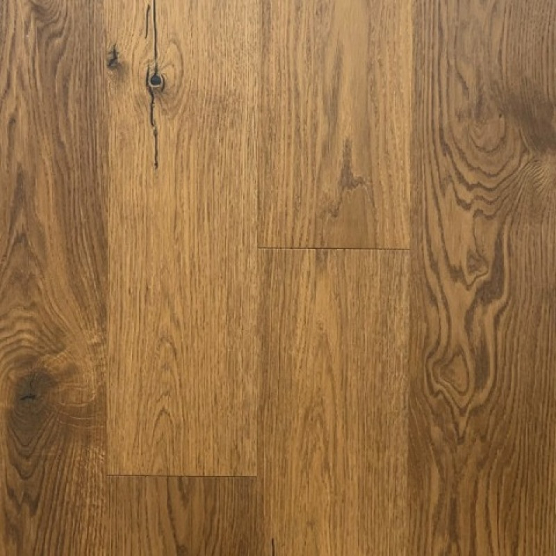 Инженерная Паркетная доска на HDF плите. Верхний слой - Дуб \ Ясень 2,3 мм. Средний слой - HDF плита (Германия) плотностю 980 кг/м³, пропитанная влагозащитным материалом, категорией экологичности Е-1 (как хвоя). Масло и отедльный слой воск Osmo (Германия) 45 - 55 гр./м², лак Elastik (Италия) - 80 - 90 гр./м². Сортировка селект: сучки максимальные - "глазки", заболонь - недопустима. Сортировка рустик: сучки зашпаклеванные - любые, заболонь - недопустима, если декор не обрабатывается копчением. Нижний слой - березовый шпон. Замок - Unilin Click. Допустима укладка на теплый пол. Фаска 4х сторонняя - 4V.