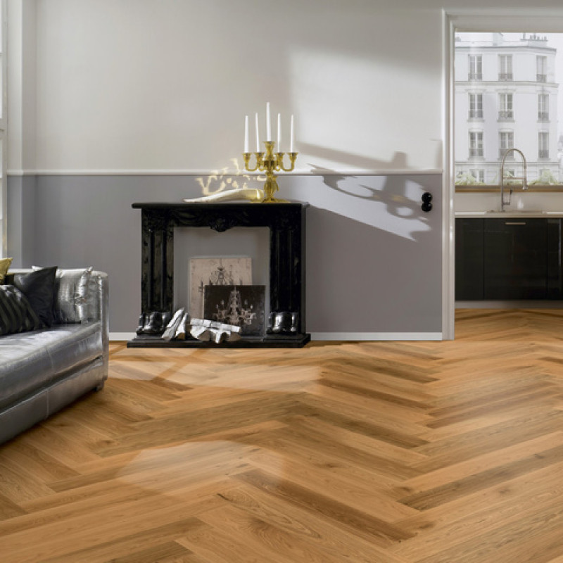 Паркетная доска Ter Hurne Английской Елочкой - воплощение классического паркета. Дополнительная фаска по периметру каждой доски производит особое впечатление. Паркетная доска Ter Hurne Английской Елочкой имеет одинаковый профиль - нет ни правой, ни левой доски, что значительно уменьшает отходы при укладке. Конструкция доски позволяет укладывать в однорядную и двухрядную паркетную доску Английской Елочкой.