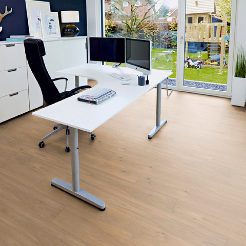 Паркетная доска коллекции «Heaven» источает нежное и небесное спокойствие. Эта коллекция основана на создании более спокойных поверхностей. Это гармоничная сортировка древесины, сбалансированные цветовые гаммы и мягкая обработка. Финишное покрытие этой паркетной доски - матовый лак. Это позволяет свету лишь слегка отражаться. Как результат - шелковистый, приятный и естественный вид, который легко тактильно ощущается.