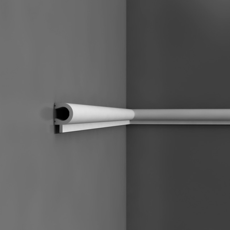 Молдинг (профиль) для декоративного оформления верхней части стеновых панелей PX147 и других. Прочный материал, не боится влаги. Для помещений с повышенной проходимостью.