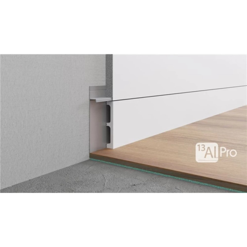Скрытый плинтус AlPro13 - 323 маскирует стык между стеной и напольным покрытием, зрительно увеличивает помещение, избавляет пространство от лишнего визуального шума и подчеркивает монументальность.