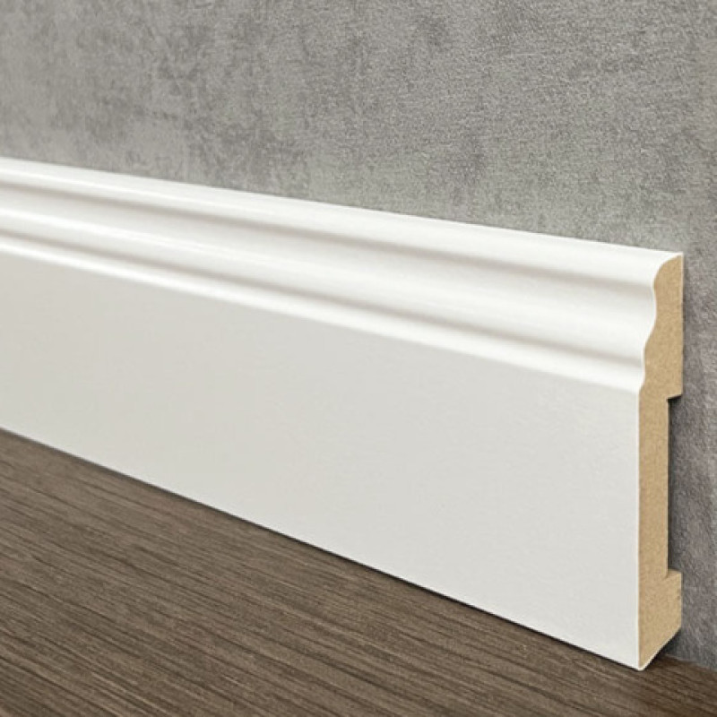Плинтус производителя OHZ не требует окраски и подходит для всех типов напольных покрытий. Устанваливается с помощью клея. Высокая плотность материала 600-750 кг/м3 обеспечивает устойчивость к повреждениям.