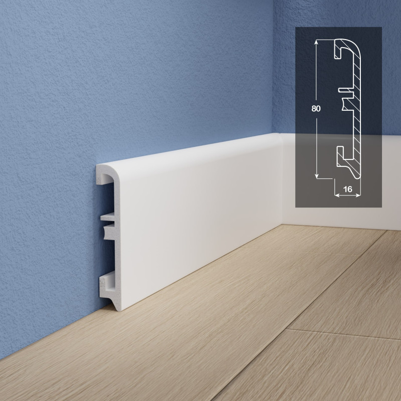 Материал абсолютно безопасен для здоровья: не выделяет вредных веществ и полностью пригоден для утилизации. При производстве плинтуса не используются токсичные соединения, что делает его экологичным и безопасным для дома.