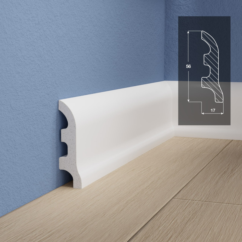 Плинтус FLINT изготовлен из высокоплотного вспененного полистирола по уникальной технологии. Лицевая часть плинтуса покрыта дополнительным ударопрочным слоем, который по прочности и долговечности не уступает керамике.
