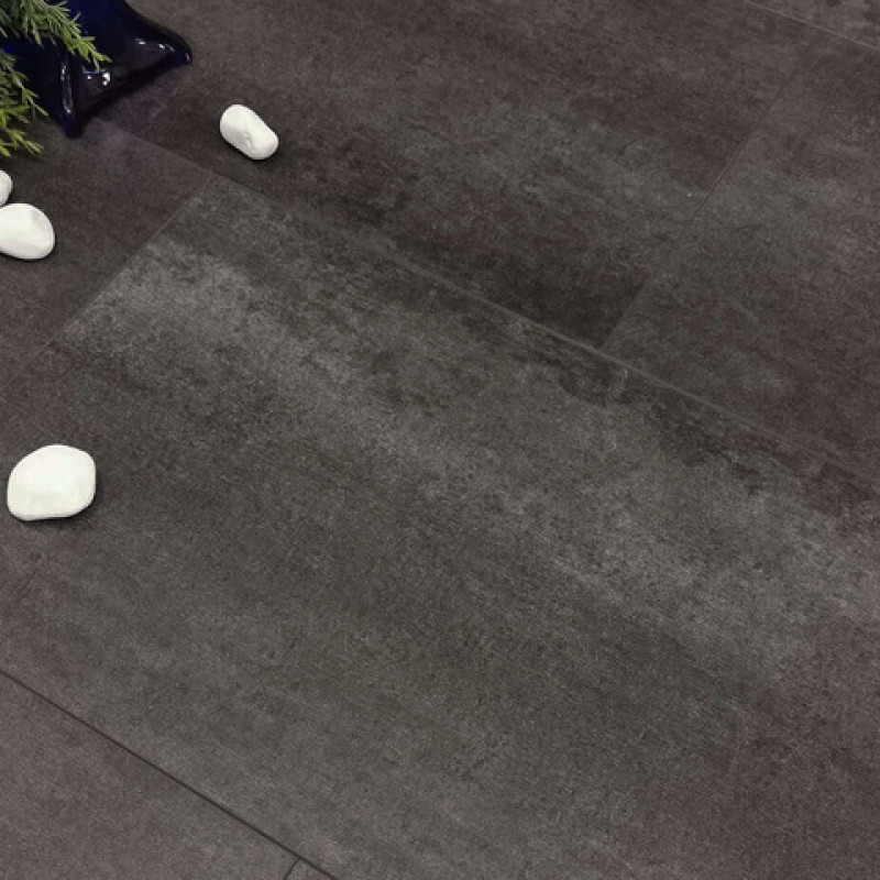 Замковая плитка SPC от производителя Stone Floor Грейрок имеет насыщенный темно-серый оттенок мокрого бетона. По всем сторонам плитки имеется глубокая 4-сторонняя крашенная фаска, которая позволяет сделать стык ламелей более совершенным и визуально приятным.
