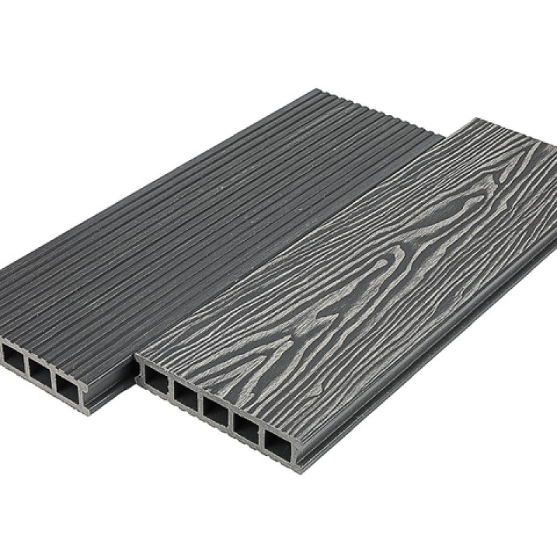 Praktik New 3D – шовная террасная доска из композита в цвете: венге, орех, серый, графит, махагон.